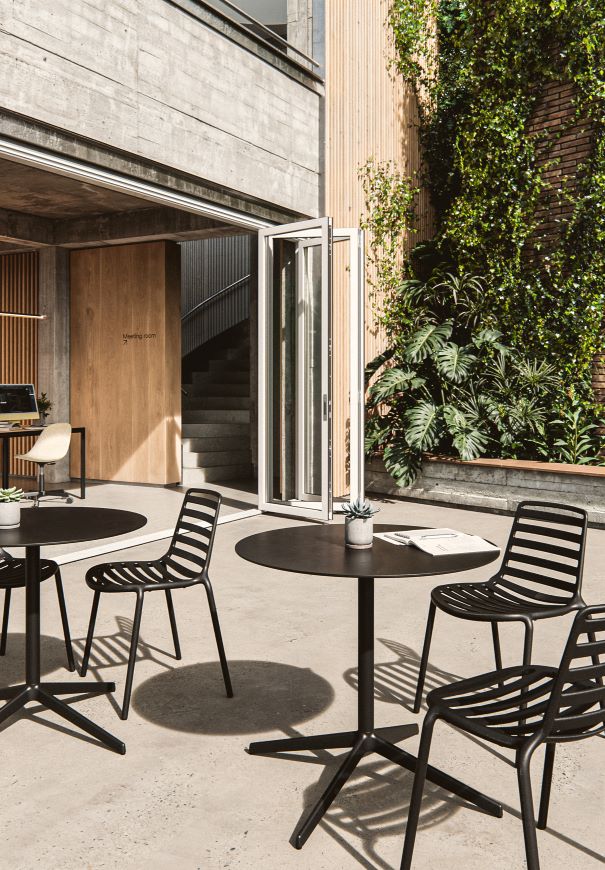 Der Stuhl Street PP verfügt über einen Rahmen aus Polypropylen in einer unserer Farben und ist dafür konzipiert, seine Haltbarkeit in Außenbereichen zu gewährleisten. Leicht und stapelbar, sorgt sein ergonomisches Design für Komfort und macht ihn zu einem stilvollen Element für Terrassen oder Balkone.