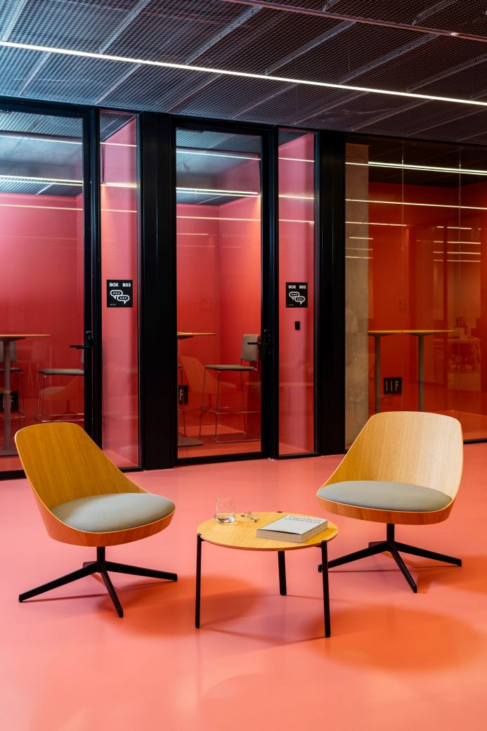 In the entrance hall, the furniture helps create a welcoming and representative space, designed for arrivals, waiting areas and informal meetings. Pieces from the Ekuru, LTS, Ema and Taber collections have been incorporated here, combining comfort, durability and a sober aesthetic in line with the GOe’s identity.
