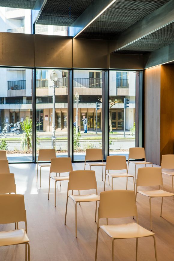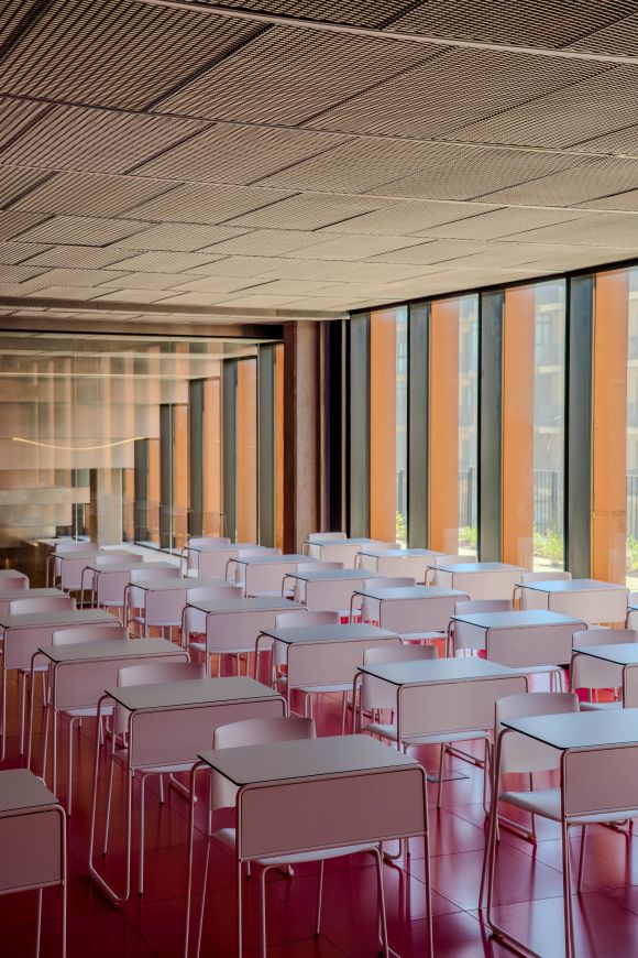 In the classroom areas, both internal and public, the furniture supports the learning and experimentation processes that define the GOe. The Ema and Tema collections are integrated into versatile training spaces, prepared to adapt to different dynamics, from private classes to workshops open to the general public.