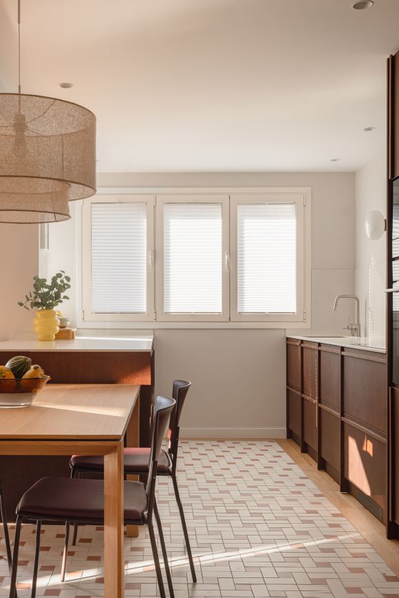 In this project by Lasal Estudio, the kitchen renovation becomes a statement of style: an elegant combination of deep wine tones and walnut wood that brings warmth and sophistication. In this space, our Ema chairs integrate effortlessly, offering visual lightness and everyday comfort.
