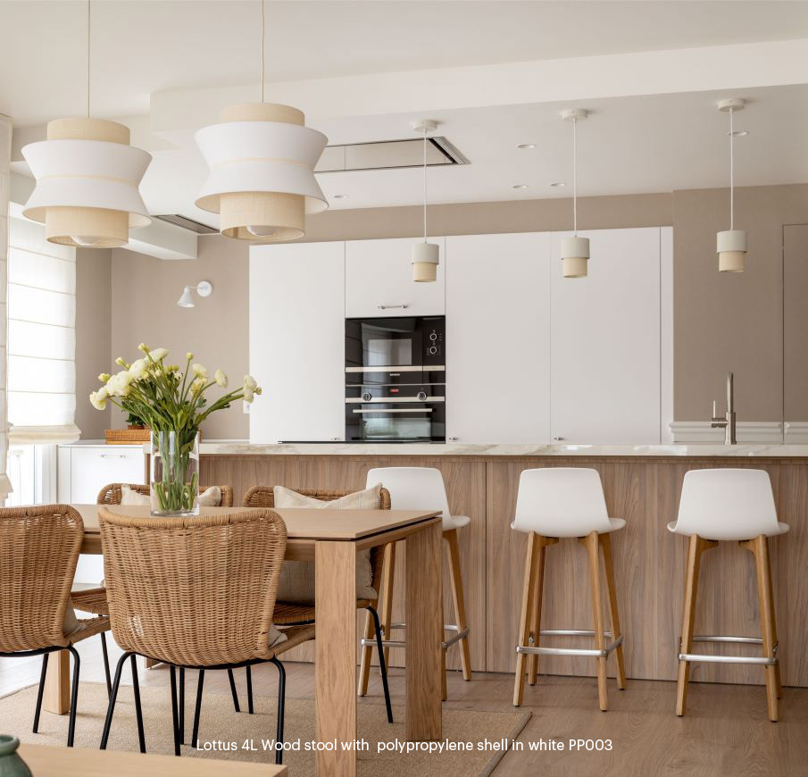 The Lottus stools, were seamlessly integrated into the kitchen, offering both style and comfort. Their versatility made them ideal for the space, improving usability.