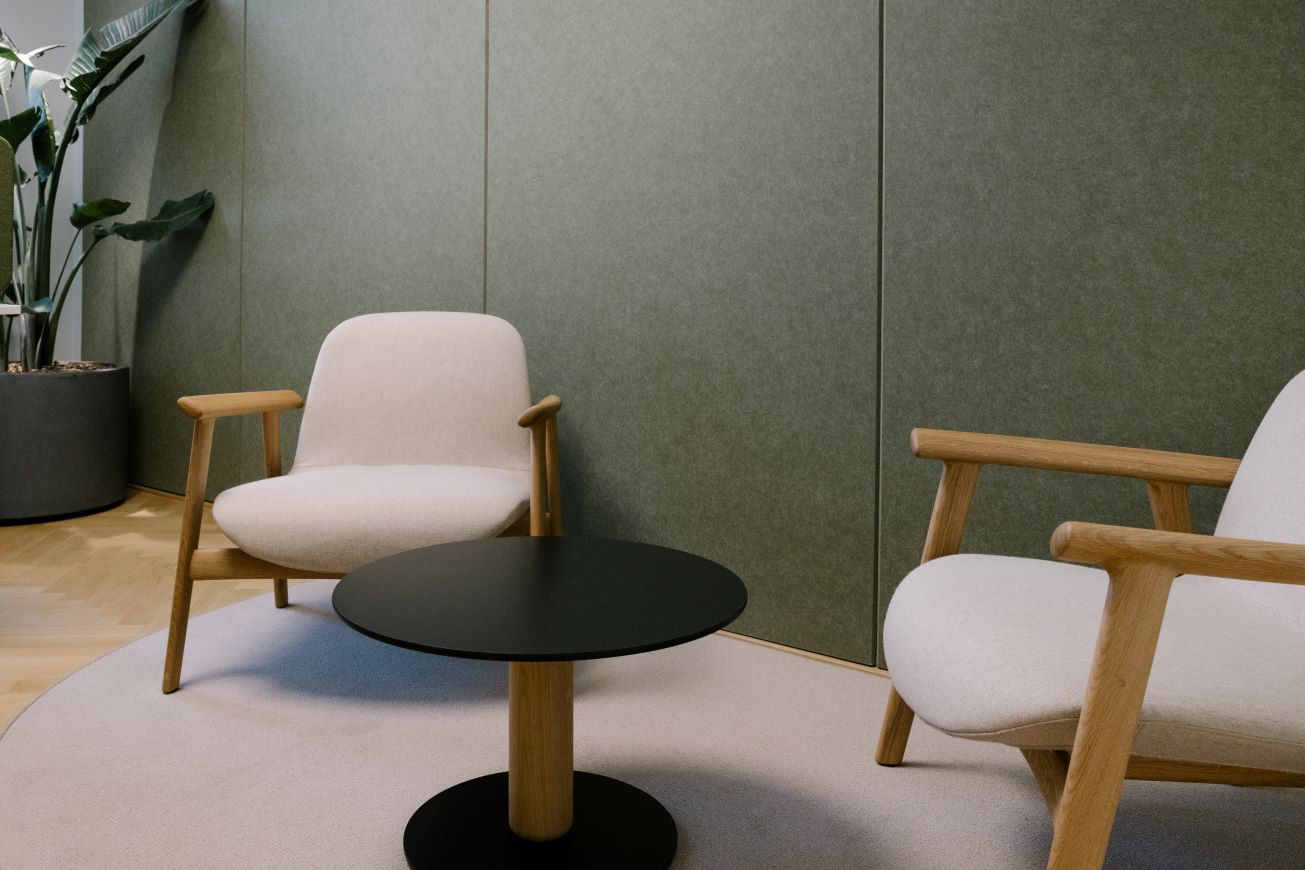 For moments of relaxation, Artline has selected a Kua lounge chairs, the matching side table, and a Puck pouf. This small oasis invites short breaks, quiet reflection, or spontaneous inspiration. A corner that shows how design can positively influence everyday well-being.