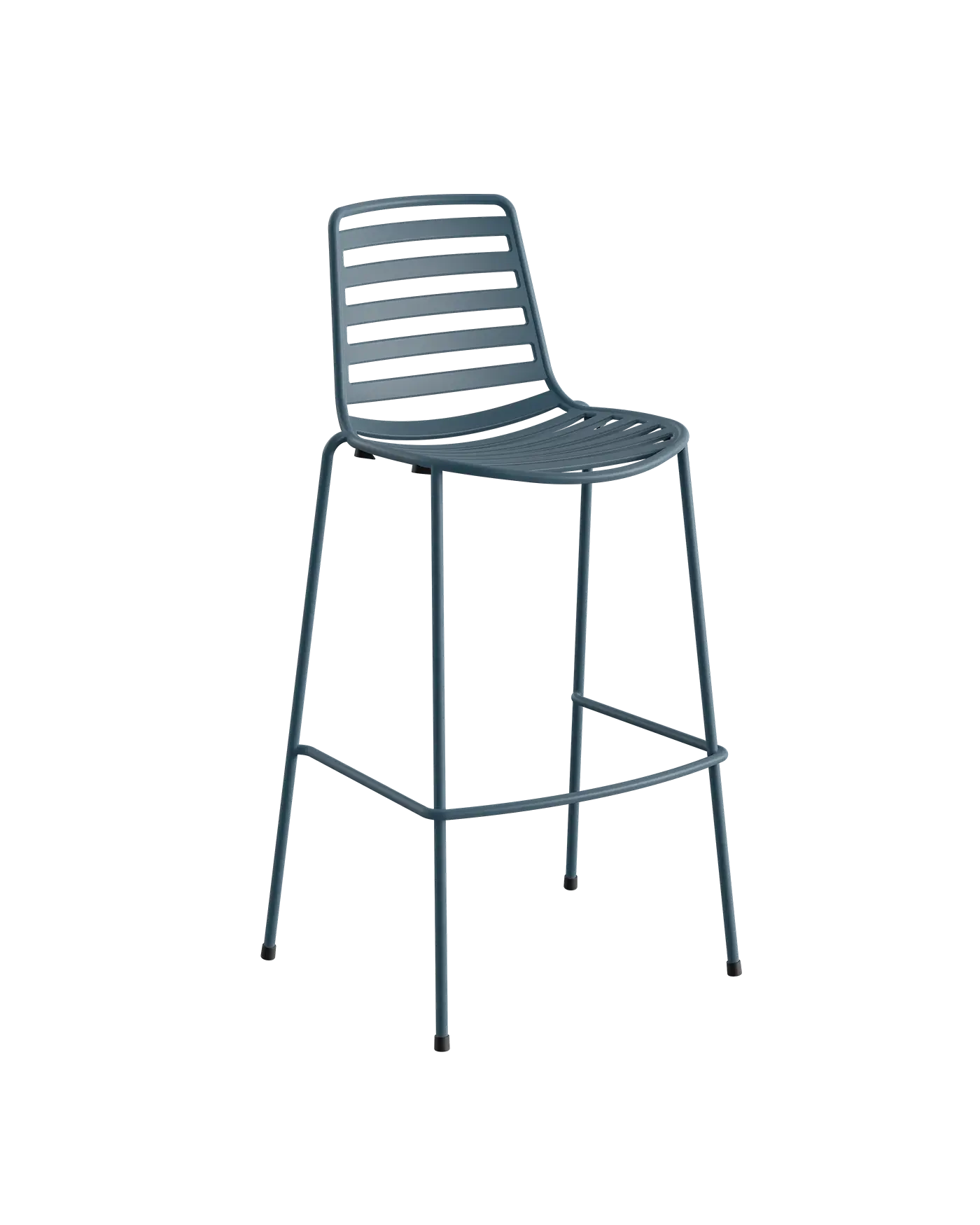 El taburete Street tiene una estructura de acero lacado en cualquiera de nuestros colores, y está diseñado específicamente para espacios exteriores gracias a su tratamiento de cataforesis. Se le puede añadir un cojín tapizado en tela para exterior, y es un taburete apilable, idóneo para terrazas de bares, restaurantes y hoteles. Este modelo está disponible en dos alturas: medio y alto.